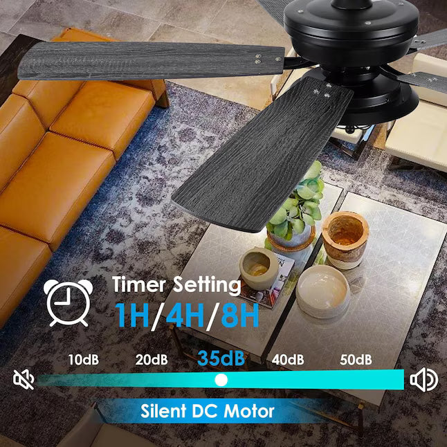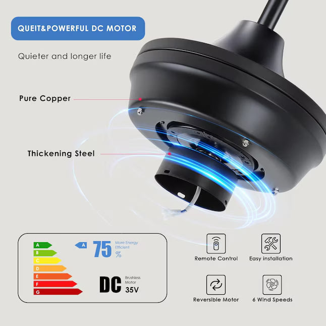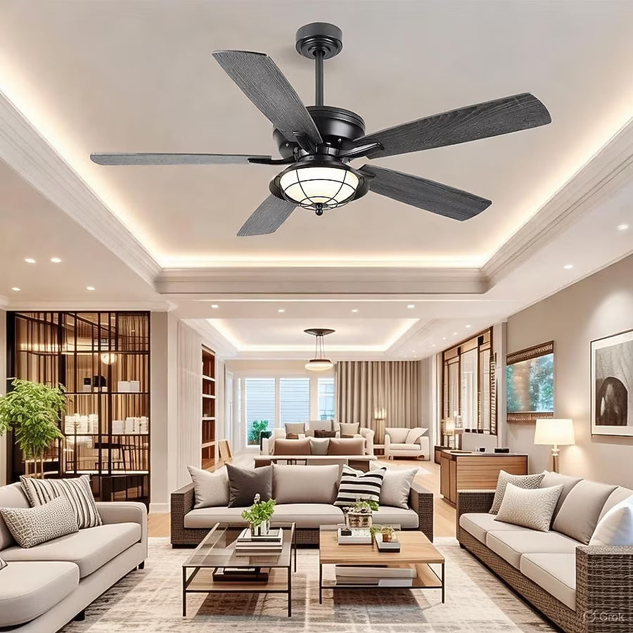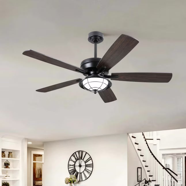 Kviflon 52 in Ceiling Fan with Light Glass Shade Traditional Design Reversible Blades Remote Control 6 Speed Downrod Mount Indoor and Outdoor for Living Room Bedroom Garage Black