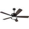 Outdoor rated ceiling fan design allows use in both indoor and covered outdoor spaces.